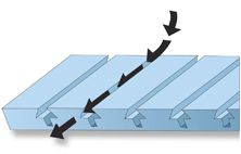 Drainage Grooves-The STYROFOAM insulation board’s drainage grooves are specifically designed to drain water away from the foundation walls, channeling ground water down to the drain tile. The extruded polystyrene of 25 psi protects the membrane and becomes a front line defense against hydrostatic pressure.